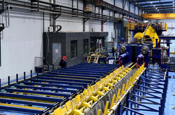 目前,1850热轧机组、带材连续式退火炉、6300T卧式挤压机、1200kg真空自耗凝壳炉等一大批先进新设备已相继投入使用;眉县产业园金属复合材生产线、高品质钛铁生产线、精密机械加工生产线等也陆续投产。这些高质量项目的达产达效,不仅大幅提升了宝钛集团新材料的供给能力,更为企业逐步实现“供给高端化、结构合理化、发展绿色化、转型数字化、体系安全化”提供了有力支撑。