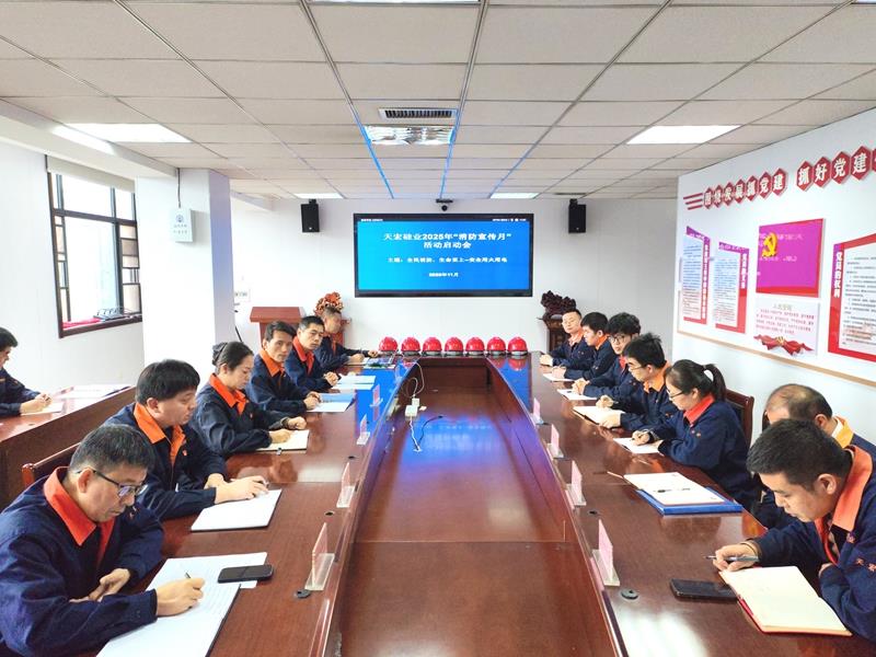 为深入贯彻落实消防安全工作,全面提升公司消防安全管理水平,进一步增强全体员工的消防安全意识和自防自救能力,11月12日,天宏硅业举行了2025年消防宣传月活动启动仪式,正式开启以“全民消防 生命至上——安全用电用火”为主题的系列消防宣传月活动。公司党委书记、董事长刘建中出席会议并作动员讲话。