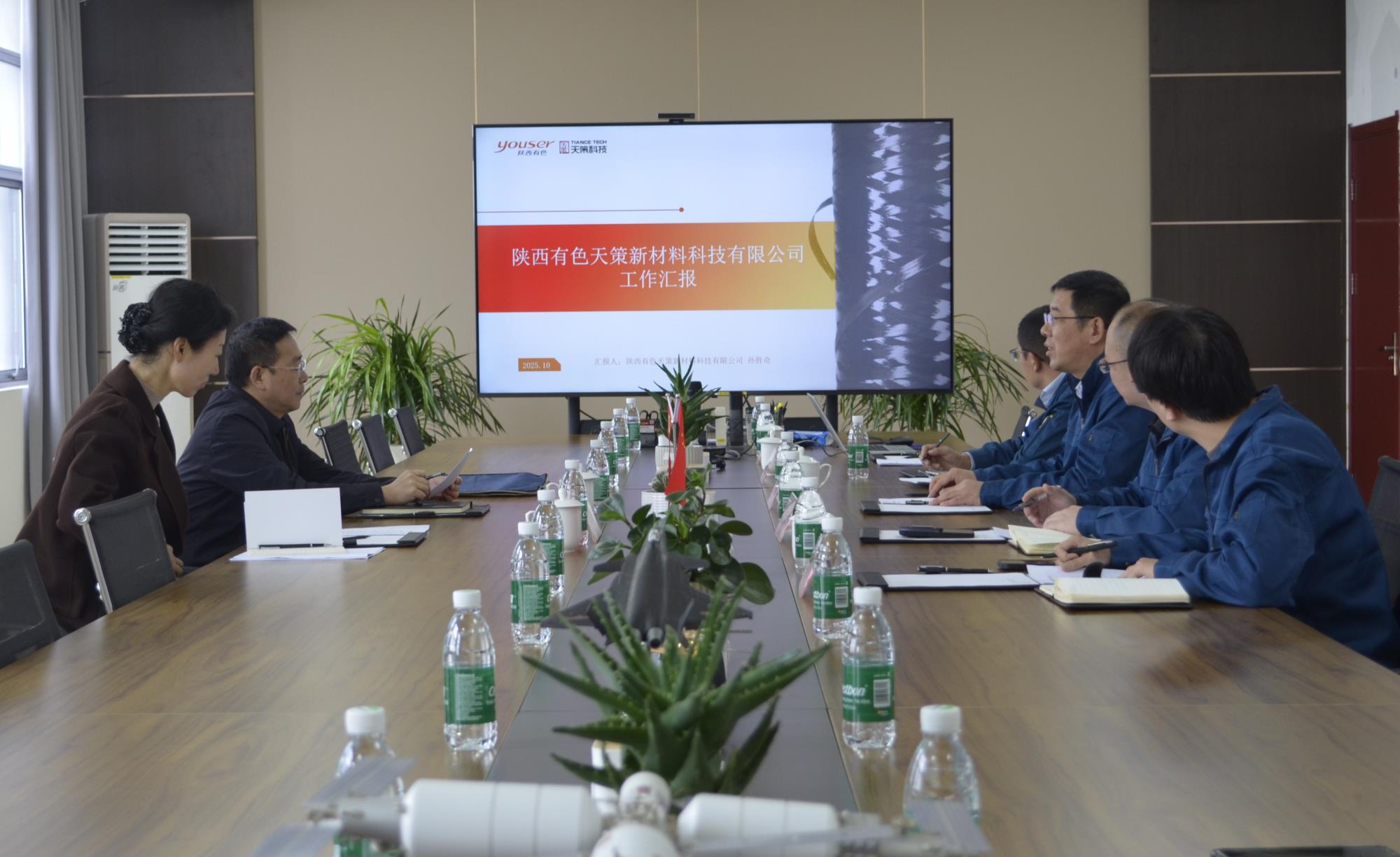 10月21日,陕西有色金属集团党委副书记郭仕龙率队赴陕西有色天策新材料科技有限公司(以下简称“天策科技”)调研党建工作。天策科技党支部书记、董事长孙胜奇陪同调研。