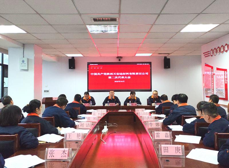 近日,中国共产党陕西天宏硅材料有限责任公司第二次代表大会在公司多媒体会议室召开。大会的主题是:以习近平新时代中国特色社会主义思想为指导,深入贯彻党的二十大精神,全面落实新时代党的建设总要求和新时代党的组织路线;在上级党委的正确领导下,回顾公司过去五年工作,剖析存在不足,研判当前形势,明确未来五年工作思路与举措,选举产生公司新一届党的委员会和纪律检查委员会。