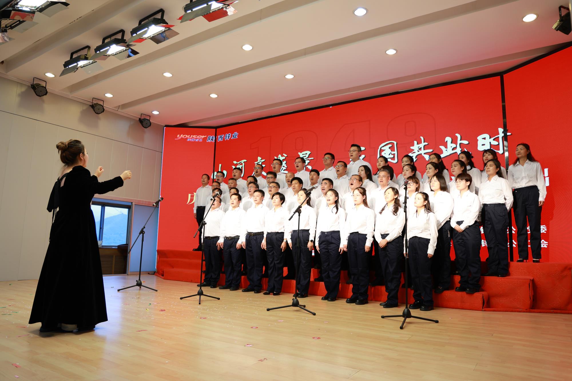演出最后,公司领导班子成员与机关联合分会等五十人组成的合唱团压轴登场,共同高歌《没有共产党就没有新中国》和《歌唱祖国》。当熟悉的旋律响起,全场职工自发肃立齐声合唱,嘹亮的歌声响彻全场,将整场演出的热烈氛围推向最高潮,也为此次文艺汇演划上了一个圆满的句号。
