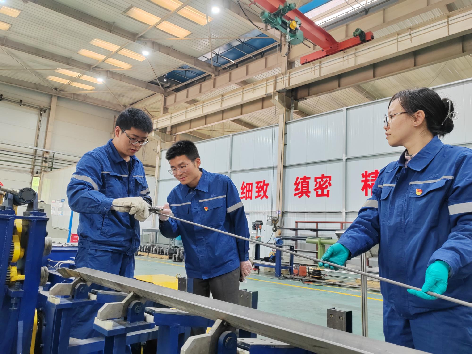 薄壁钼合金管主要应用于核电及高端温控等领域,而国内高附加值大长径比薄壁钼合金管的制备技术一直处于“无人区”。席莎和研发团队决心啃下这块“硬骨头”。作为薄壁钼合金管关键制备环节之一-合金管坯制备的工艺负责人,为了打通合金管坯的制备工艺,为成品管材轧制提供稳定可靠的管坯,席莎在40℃左右的锻造车间连续试验跟踪,认真做好每一次试验记录,力求把每一个环节做到极致,常常汗流浃背也无暇顾及。为了做到成品管材质量追溯有据可依,她和团队人员经常加班加点、挑灯夜战寻求最佳解决方案。最终,在她和团队的不懈努力下,攻克了薄壁钼合金管材全流程关键制备技术,成功开发出了直径4-20mm、壁厚0.3-1.5mm、最大长度6米的薄壁钼合金管材,填补了国内大长径比薄壁钼合金管的产品空白并获得了核能及温控领域用户的极大肯定。
