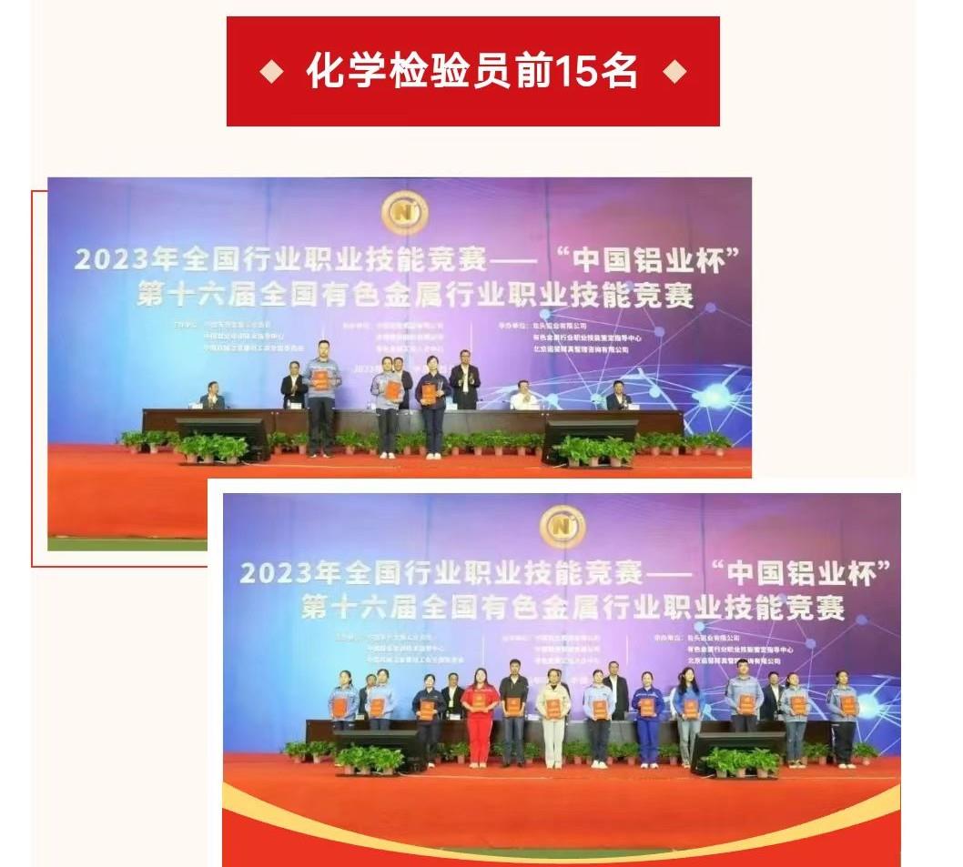 近期,2023年第十六届“中国铝业杯”全国有色金属行业职业技能竞赛决赛在包头铝业落下帷幕。榆林新材料集团荣获团体优秀奖;质检计量中心石蕊宁获得化学检验员第二名、田阳获得化学检验员第十三名;质检计量中心郝光云、段波获得优秀教练员荣誉称号。